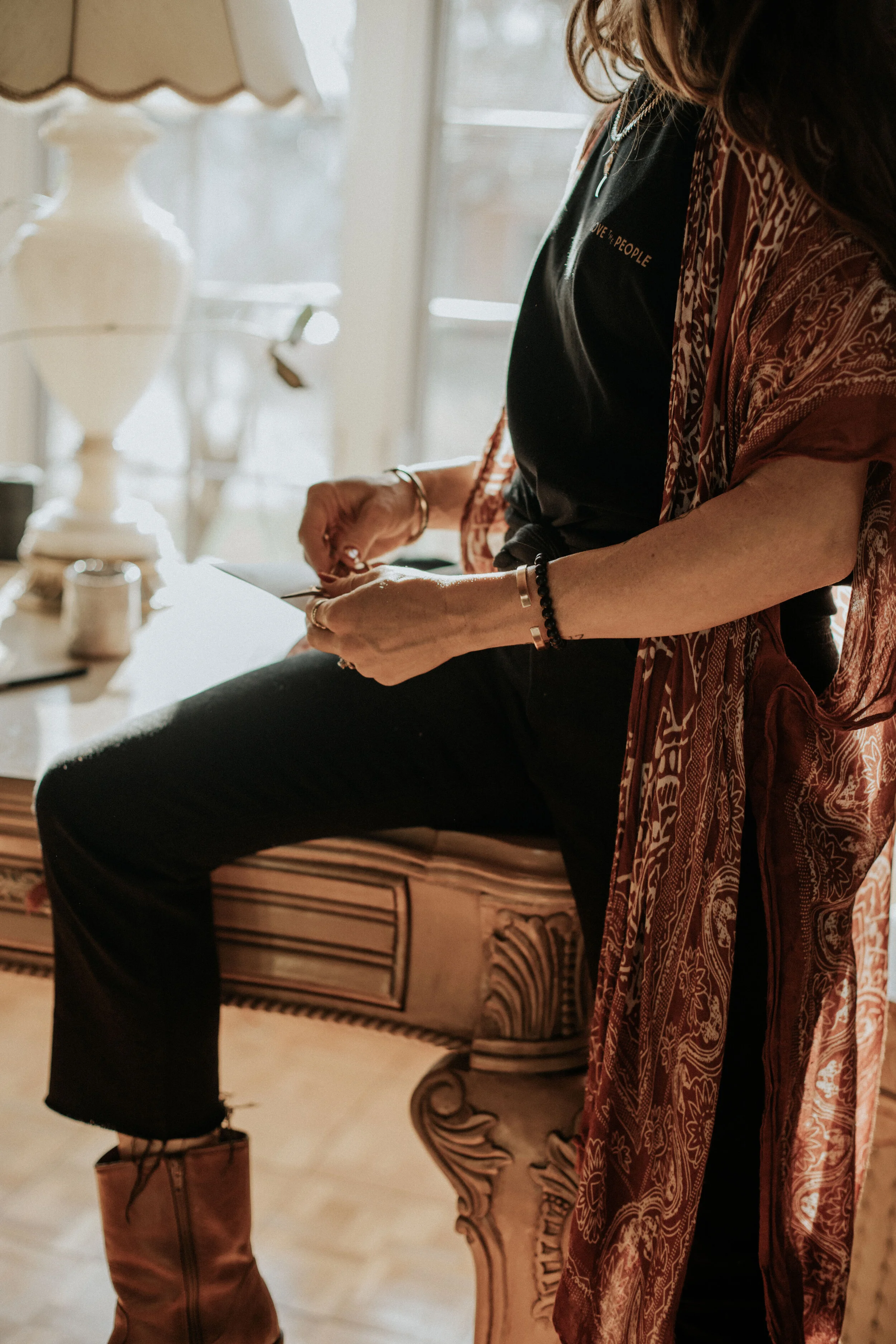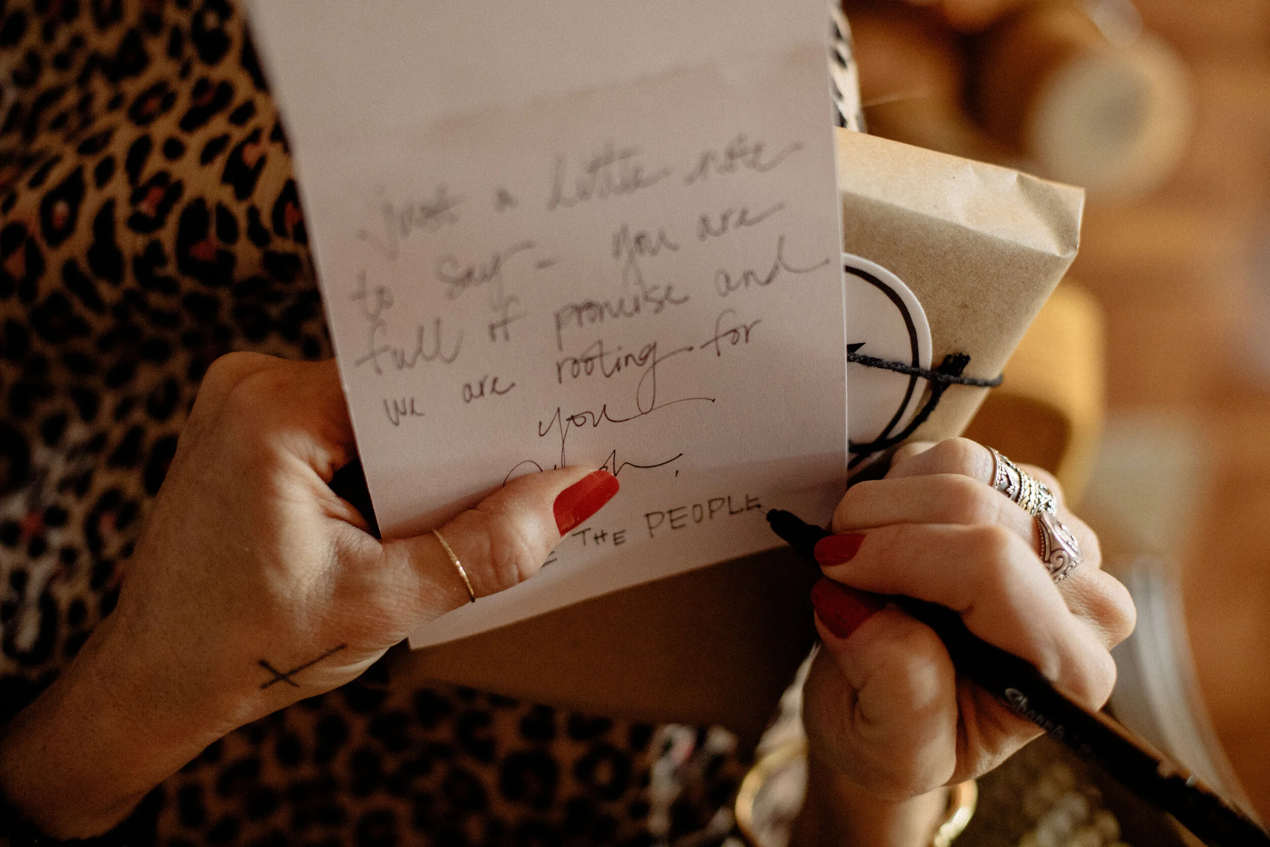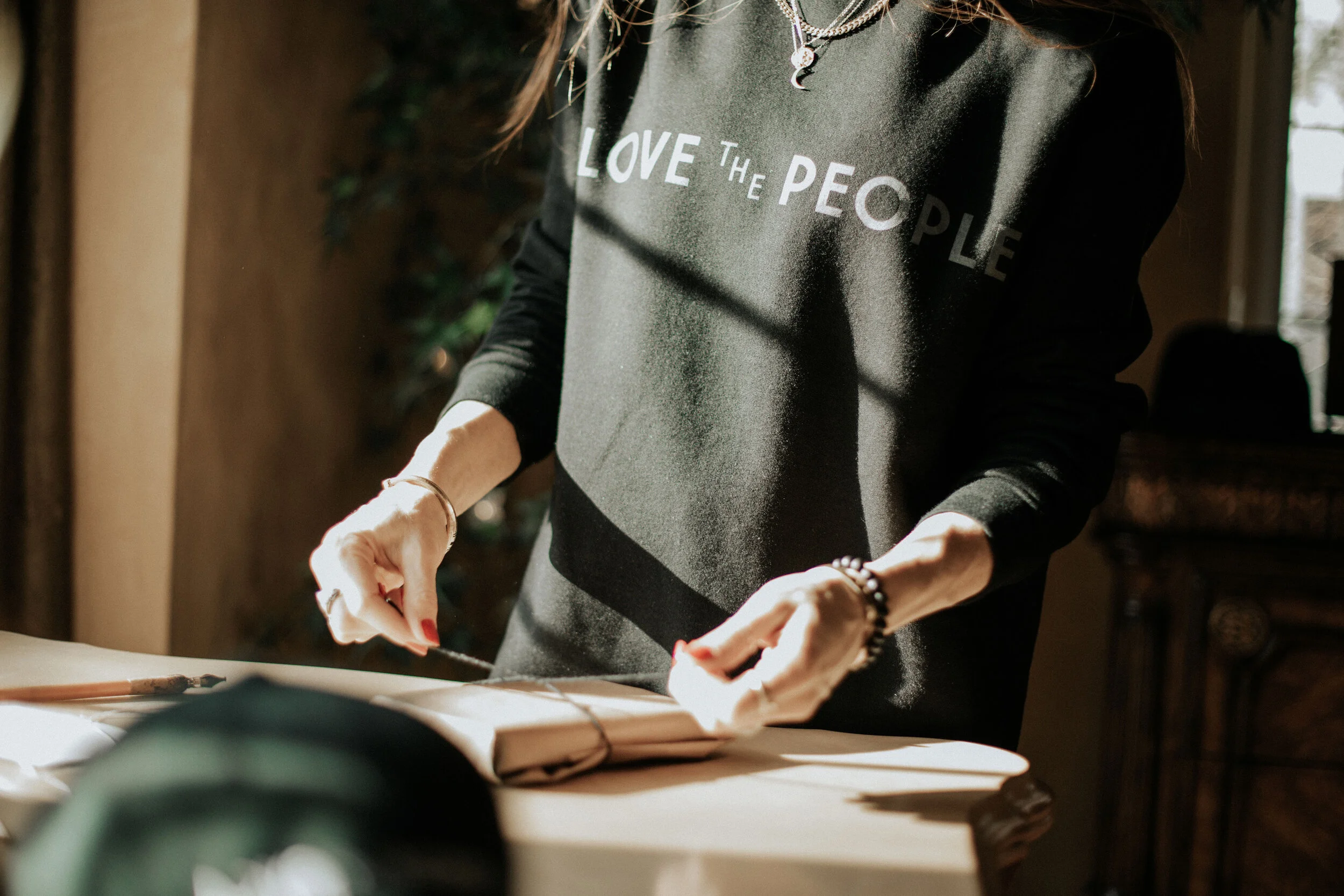 A lover of people, carefully packing parcels for those she holds dear and a few who are new to her heart. Bathed in morning light, she delicately cuts a ribbon and ties it into a bow. Reaching for a single card, she begins to write. Her words are thoughtfully chosen and she often pauses before beginning again.